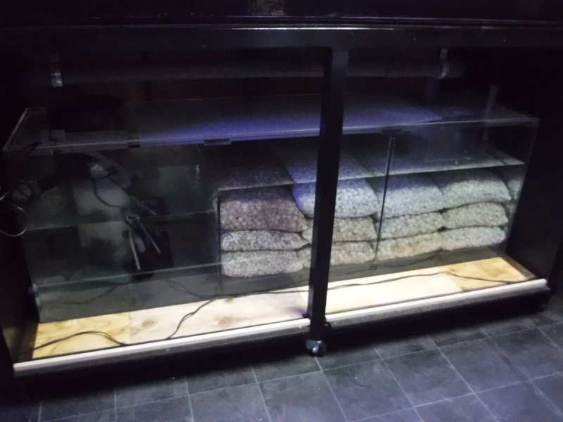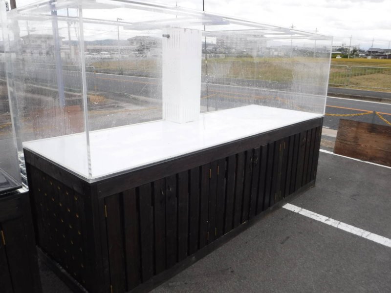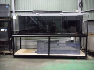 | 仕様: | セット内容 水槽 W2225×D1000×H900 20t 写真には写っていませんが、コーナーカバーのスライドもあります (底面内側に黒の板を貼り付けてあります。素人貼りではありません) 濾過槽 W1800×D800×H400(ウールBOX +140) 台 木製(キャビネット風)H910 水槽蓋(多少の曲がりあり) |
