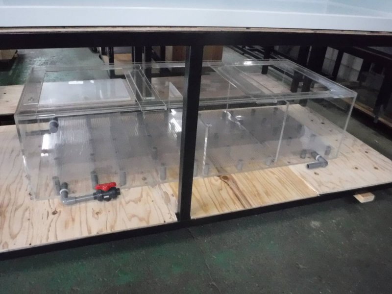 | 仕様: | セット内容 水槽2台 W2000×D600×H600 2面ブラック 厚み13㎜ 右の端にキラキラ劣化あり・フランジ補強あり W1800×D800×H600 2面ブラック仕様(内側から塩ビ貼付け) フランジ補強あり 濾過槽 W1500×D450×H300 (上部濾過の改造型ウールBOX付き) 台 鉄製 全体の高さ H2150 |