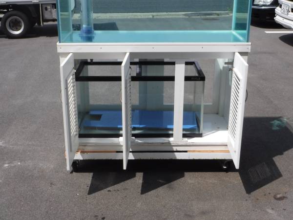 | 仕様: | 水槽 W1200×D600×H600 オールガラス 3重管 12㎜ 付属品 木製台 H730㎜ 濾過槽 W900×D450×H450(既製品を濾過槽にしているようです) ピストル配管 |