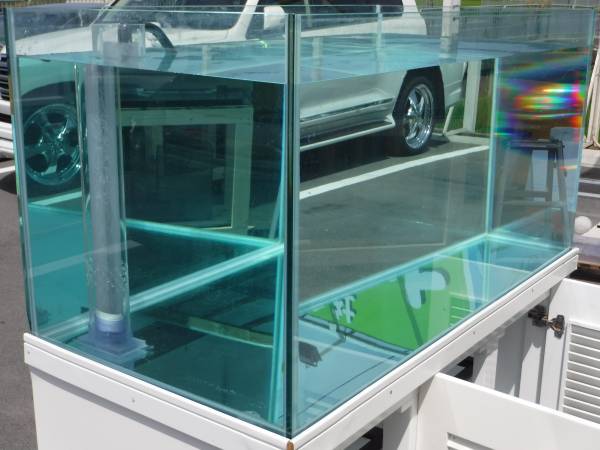 | 仕様: | 水槽サイズ W1800×D600×H600 オールガラス 底に水抜き用のバルブがあります 付属品 木製台(マーフィード) |