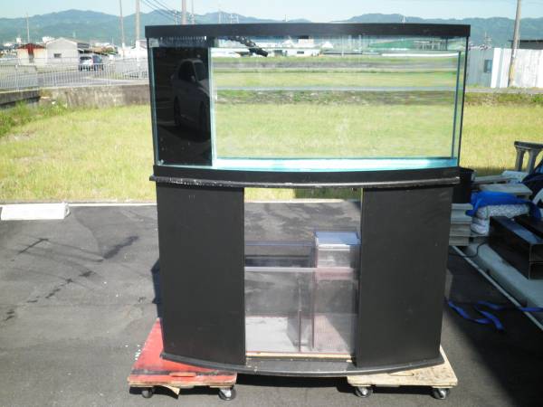 | 仕様: | 水槽 W1230×D330~D450楕円形×H580 ガラス オーバーフロー 濾過層 2層 W600×D370×H400 台 木製 W1240×H810 |