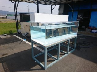 | 仕様: | セット内容 水槽2台 W1800×D750×H500 (2面ブラック) 多少の白濁りあり 濾過槽 W1200×D500×H450 台 鉄製 全体の高さH2050 水槽蓋 |
