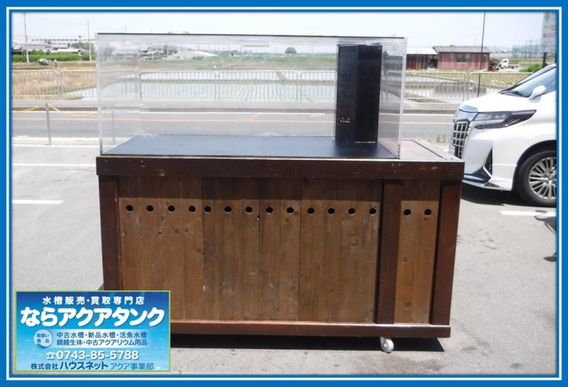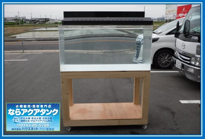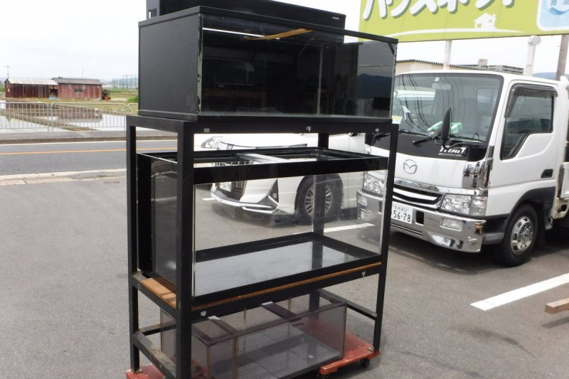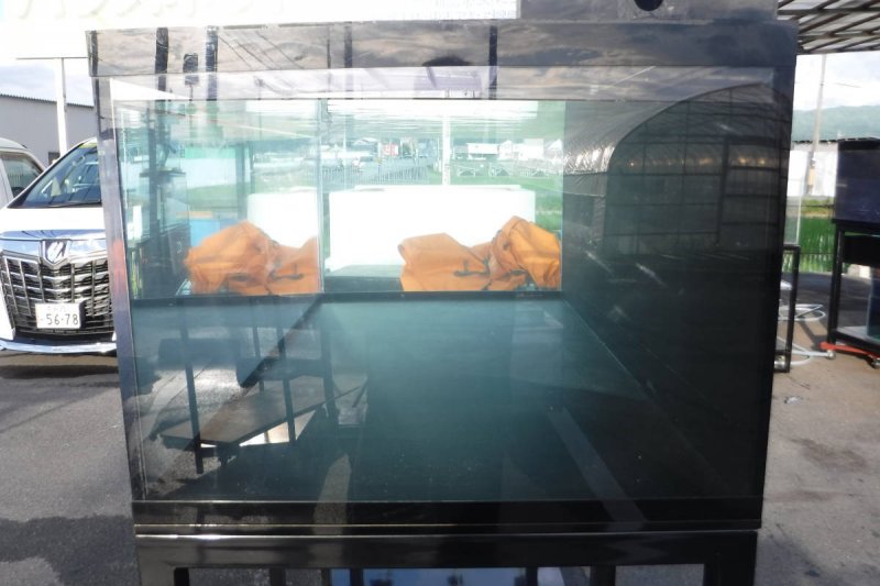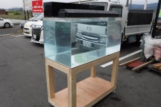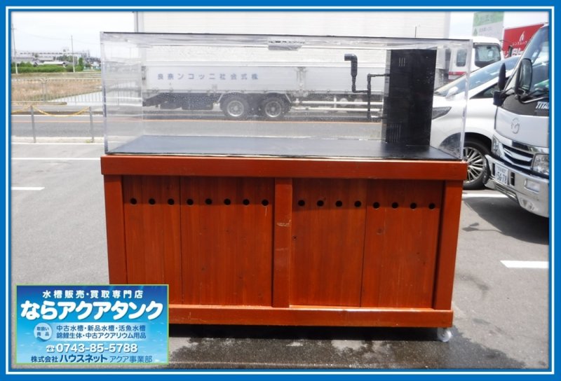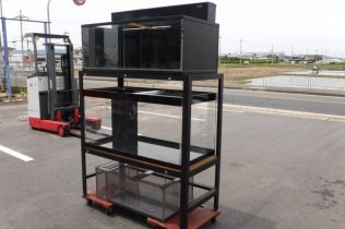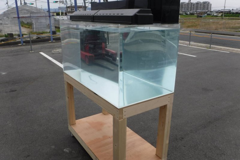 | 仕様: | 水槽=W1200×D600×H600 付属品 木製台=H810 上部濾過=W1170×D200×H200 蓋(湾曲しています) 上部ライト |