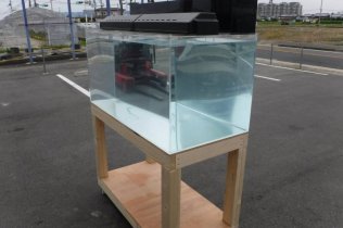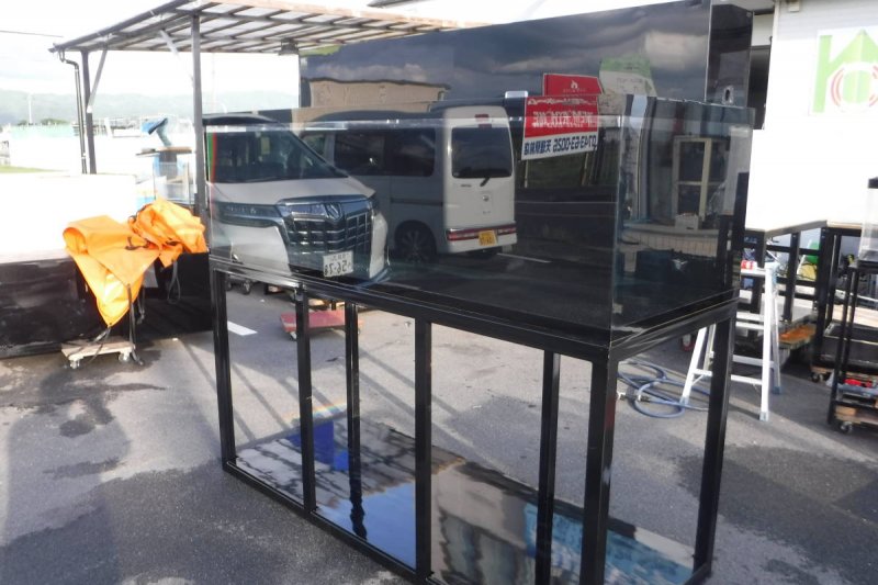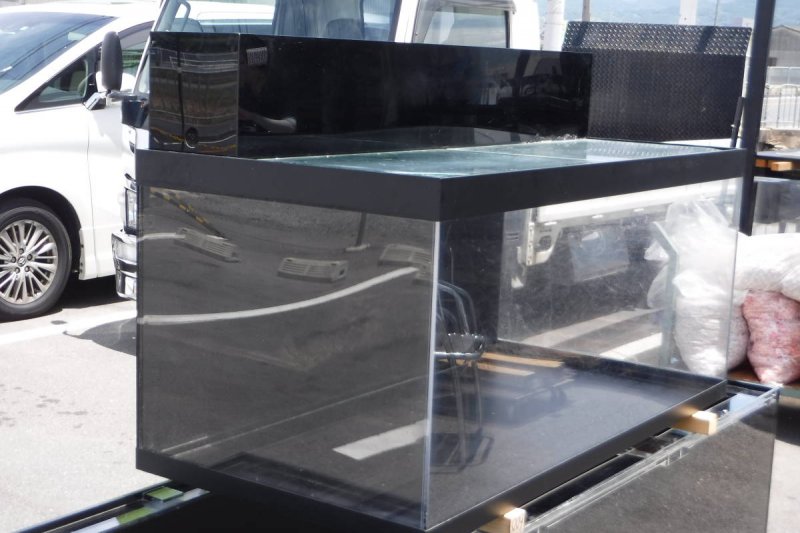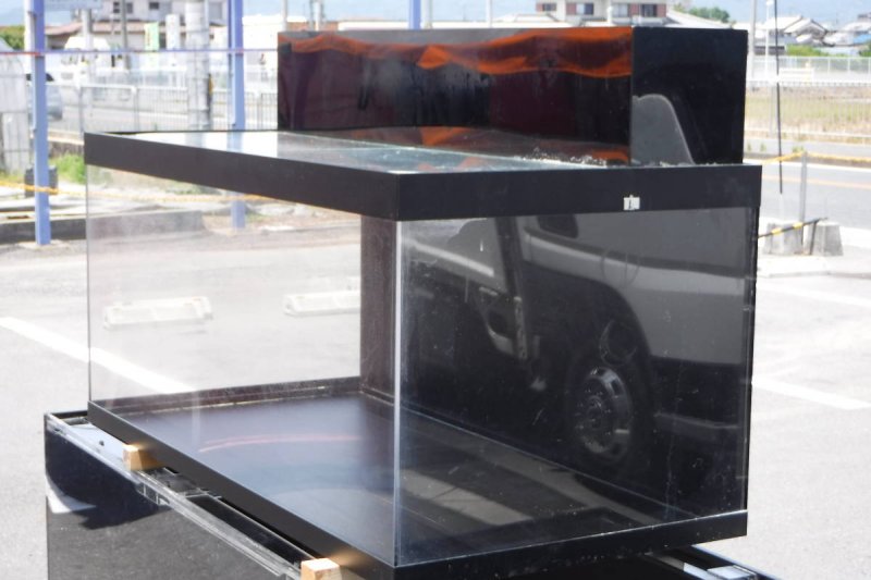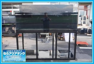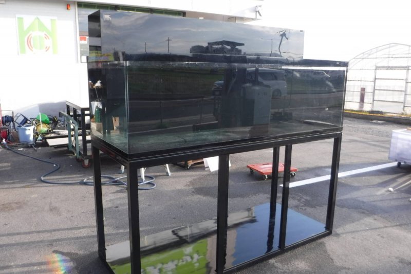 | 仕様: | 水槽=W1500×D900×H600 底面ブラック 13㎜ 飛出し防止加工 付属品 木製台=W1830×D930×H950 濾過槽=W1200×D700×H450 蓋(湾曲しています) |