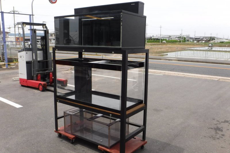| 仕様: | アクリル水槽=W1200×D600×H600 オーバーフロー 濾過槽=W900×D500×H350 ガラス水槽=W1200×D600×H450 外側3面をペンキのようなもので塗装されています 濾過槽=W1200コトブキ既製品 鉄製台=W1320×D600×H1350 |